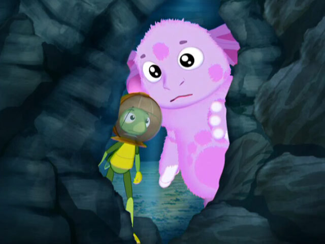 Лунтик и Кузя нашли настоящую подводную пещеру.