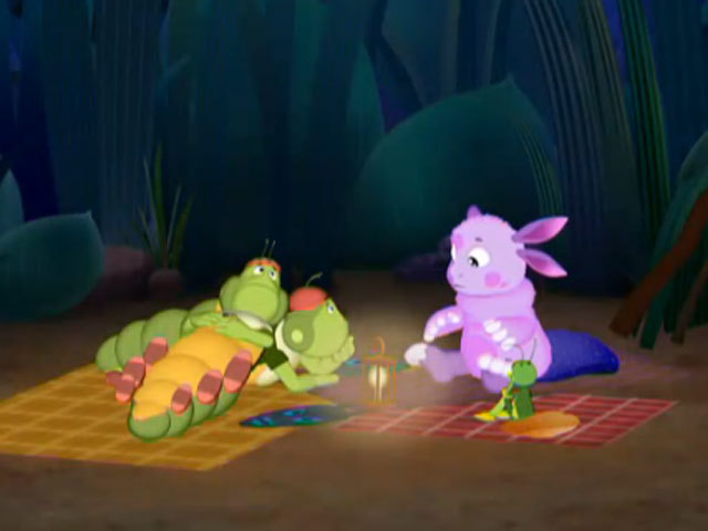 Мила ночью пугает Лунтика, Кузю и гусениц за то, что они не взяли ее расказывать страшилки.