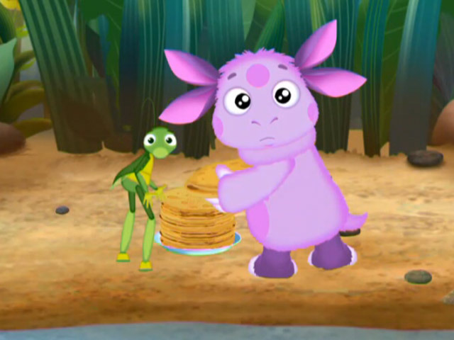 Баба Капа напекла столько блинов, что всех и не съесть. От сытости Генерала Шера потянуло в сон, так что он даже не успел объяснить Лунтику, что значит «пускать блинчики». Ни Лунтик, ни Кузя не знают, что речь идет о круглых плоских камушках, которые, если их правильно бросить, несколько раз подпрыгивают на воде. Поэтому они берут стопку блинов и идут к пруду. Позже Генерал Шер научил ребят пускать камушки по воде.