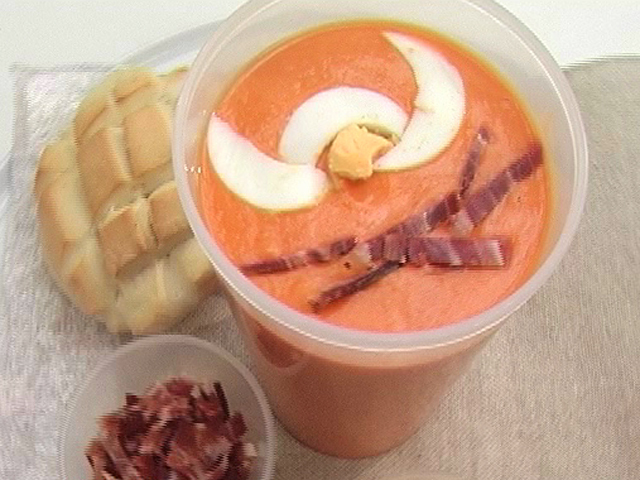 Простая подлива, которая необходима на пикнике.Состав:черствый хлеб — 150 гр;вода — 100 гр;свежий хлеб — 3 булки;ветчина — 50 гр;яйцо — 1 штука;помидоры — 1 кг;чеснок — 1 зубчик;оливковое масло — 100 гр;соль по вкусу.